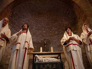 Experience a unique opportunity in Rome during the Jubilee year, exclusively at the Catacombs of Saint Callixtus, made possible by a special concession from the Vatican. You will have the chance to listen to the chants of the early Christians performed by our historically informed ensemble, dressed as they were in the early centuries of Christianity. The musical performance will be held in the Tricora, a small basilica reserved for our event, located next to the entrance of the catacombs, which houses significant paleochristian artifacts.