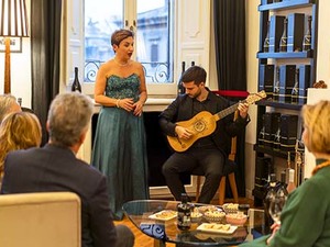 - Winetasting of four wines with our professional Sommelier (in English) before and between concert, with a final toast with the artists.