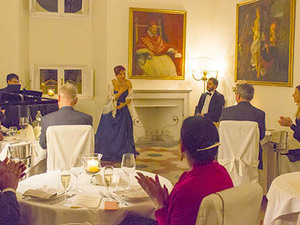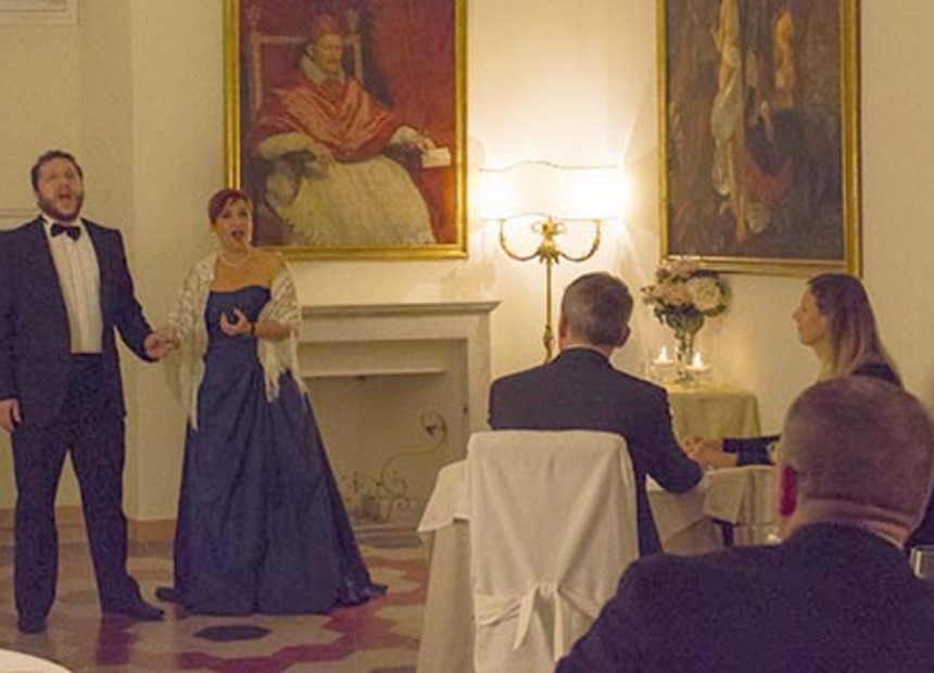 In this elegant venue, you will be seated at your reserved table to enjoy the finest Italian cuisine, paired with a selection of exquisite wines. The evening features a musical program with Arias and love Duets from the Opera, performed both before dinner and between the courses, culminating in a delightful surprise finale.