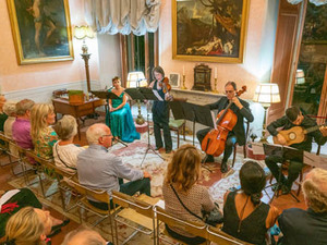 The concert hall is part of the Secret apartment of the Princess Gesine Doria Pamphilj. The splendid rooms are masterpieces of art and culture, perfectly preserved and still inhabited by the family.