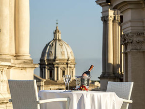 Sip your *aperitif* seated on the Terrace Borromini while listening to the music and admiring the breathtaking view of the Eternal city